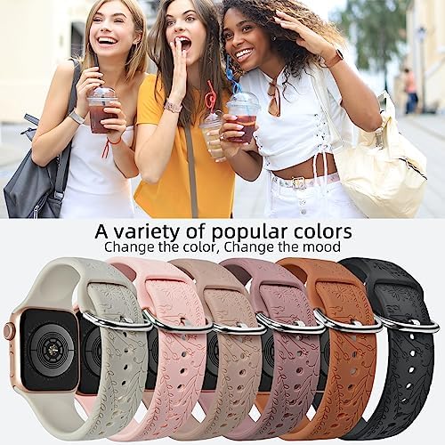 12 Pack Engraved Silicone Bands for Apple Watch Band 38mm 40mm 41mm 42mm 44mm 45mm 49mm Women, Soft Wildflowers Sport Strap Replacement with Charms for iWatch Ultra Ultra 2 SE Series 9/8/7/6/5/4/3/2/1