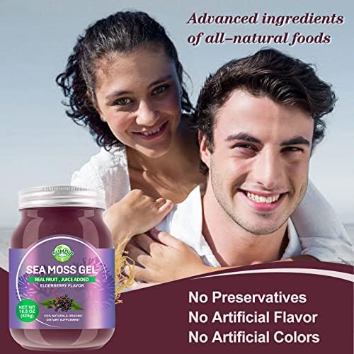 18.5OZ Sea Moss Gel, Organic Raw Wildcrafted Irish Seamoss Gel Immune and Digestive Support Vitamin Mineral Antioxidant Supplements, Elderberry,Mixed Berry Flavor