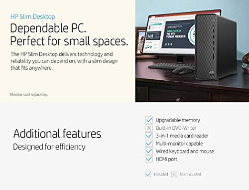 2021 Newest HP Slim Desktop Tower PC, AMD Athlon Silver 3050U, 16GB DDR4 RAM, 1TB SATA HDD, HDMI, USB, WiFi, Bluetooth, Wired Keyboard & Mouse, Windows 10 Home (Renewed)