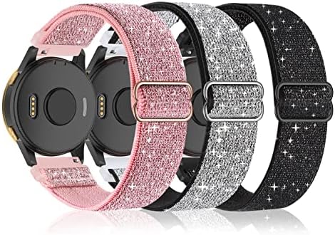 3 Pack Stretchy Nylon Watch Bands Compatible with Garmin Venu/Venu Sq, 20mm Loop Elastic Straps Compatible with Garmin Vivoactive 5/Vivoactive 3/3 Music,Venu 2 Plus,Forerunner 645/55/245 Music Women Men
