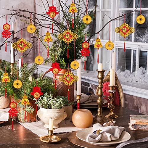MATERIAL & SIZE – These Chinese new year decoration set are made of felt fabric and gold coating, lightweight, durable, waterproof and not easy to fade. Comes with red ropes for easy for hanging. The overall length including the string is about 26cm/10.24 inches.