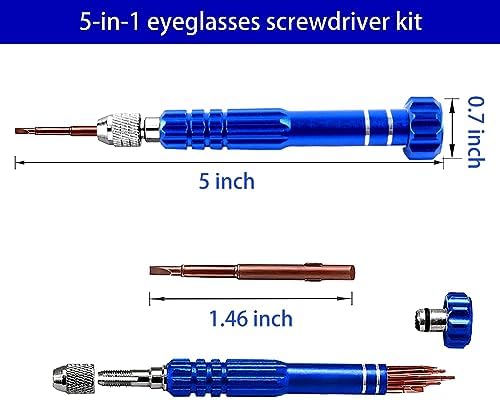 5-in-1 Eyeglass Repair Kit, 3in1 Multifunctional Small Screwdriver Set, Phone Repair Kit, Premium Screwdriver Tools Kit for Repairing Sunglasses, Watches, Electronic Products, Toys (Blue)