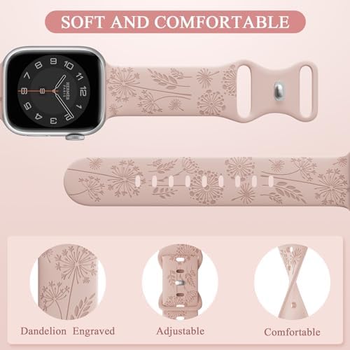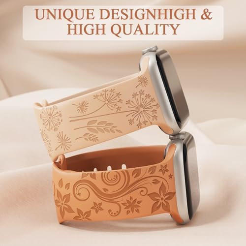 6 Pack Floral Engraved Bands Compatible with Apple Watch Band 40mm 41mm 38mm 42mm 44mm 45mm 49mm Women, Silicone Sunflower Butterfly Sport Strap for iWatch Band Series Ultra SE 9 8 7 6 5 4 3 2 1