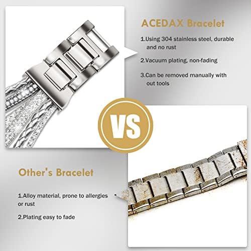 Be the first to review “ACEDAX Bracelet Work for Apple Watch Bands 44mm Women, Bling Boho Chic Leather Strap for Series 8 7 6 Apple Watch Band 45mm/42mm with Metal Buckle, Multilayer Wrap for iWatch Series SE 5 4 3 Silver”