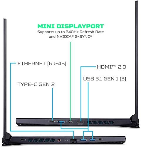 Acer Predator Helios 300 PH315-52-710B Gaming Laptop comes with these high level specs: 9th Generation Intel Core i7-9750H 6-Core Processor 2. 6 gramHz with Turbo Boost Technology up to 4. 5 gramHz, 15. 6″ Full HD (1920 x 1080) widescreen LED-backlit IPS display, 144Hz Refresh Rate, 16: 9 aspect ratio, 3ms Overdrive Response Time, 300nit Brightness, 72% NTSC, NVIDIA GeForce GTX 1660 Ti with 6 GB of dedicated GDDR6 VRAM, 16 GB DDR4 2666MHz Memory, 512GB PCIe NVMe SSD (2 x PCIe M. 2 Slots | 1 Slot Available), 1 – Available Hard Drive Bay, Waves MaxxAudio sound technology, featuring MaxxBass, MaxxVolume, MaxxDialog and hyper-realistic 3D Audio using Waves Nx, Acer True Harmony Technology, Two Built-in Stereo Speakers, Acer Purified. Voice technology with two built-in microphones, Killer Double Shot Pro Wireless-AX 1650 802. 11ac WiFi 6 featuring 2×2 MU-MIMO technology (Dual-Band 2. 4 gramHz and 5 gramHz), Killer Ethernet E2500 10/100/1000 Gigabit Ethernet LAN, HD Webcam (1280 x 720) supporting Super High Dynamic Range (SHDR), 1 – USB 3. 1 Type C Gen 2 port (up to 10 Gbps), 3 – USB 3. 1 Gen 1 Ports (One with Power-off Charging), 1 – HDMI 2. 0 Port with HDCP Support, 1 – Mini Display Port 1. 4, Backlit Keyboard, Lithium Ion Battery, Up to 6-hours Battery Life, 5. 07 lbs. | 2. 3 kg (system unit only) (NH. Q53AA. 003)
