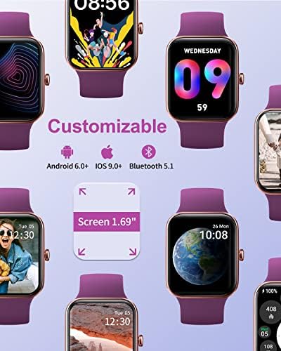 Customize & Larger Screen: Customize with 1.69″ HD ScreenSmart Notification: Receive call, text, App messageHealth Reminder: Drink water, alarm o’clock, step reminderWeather& Music: Check the weather and music