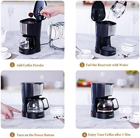 ☕️【Compact Design】4 cup coffee maker rated at 600W, coffee can be obtained in 1 minute. The electric coffee maker has a capacity of about 0.6L translucent water tank with level marks. It’s perfect size for someone who wants to make a few cups of coffee, and doesn’t want to waste a half pot of cold, un-drunk coffee when using a bigger carafe. Note: Cup equals approximately 5 oz. (varies by brewing technique).