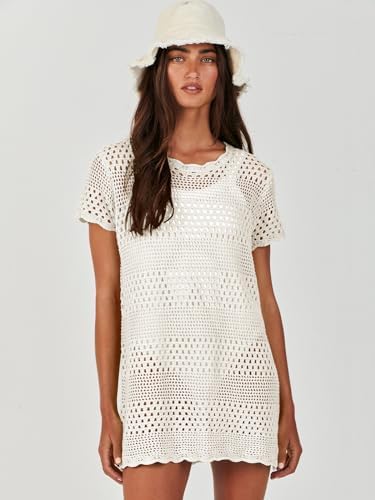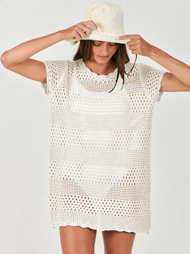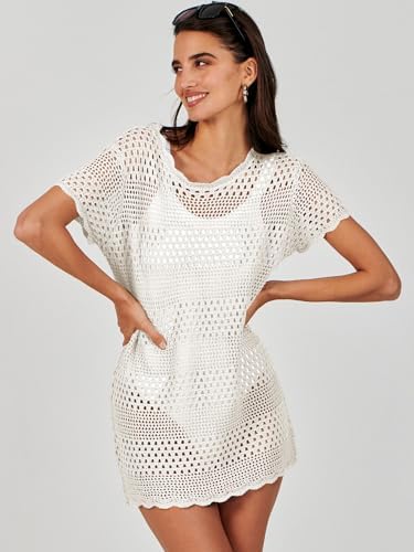 ANRABESS Women Swimsuit Crochet Swim Cover Up Summer Bathing Suit Swimwear Knit Short Sleeve Pullover Beach Dress