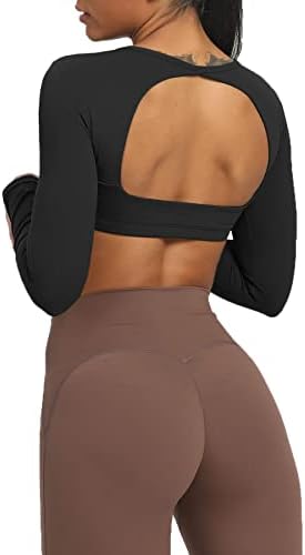 Aoxjox Long Sleeve Crop Tops for Women Clarissa Backless Workout Crop T Shirt Top