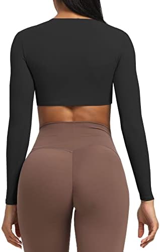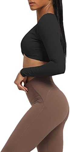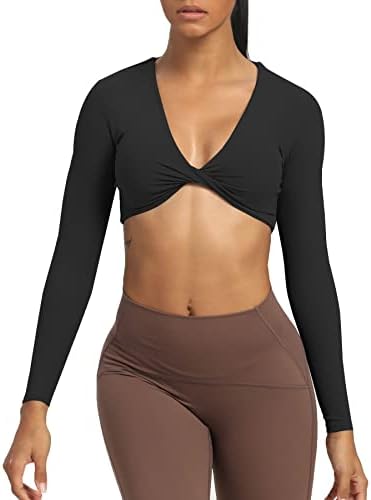 Aoxjox Long Sleeve Crop Tops for Women Sienna Twist Deep V Workout Crop T Shirt Top