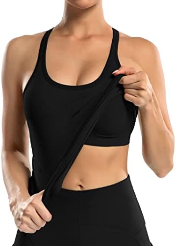 ATTRACO Ribbed Workout Tank Tops for Women with Built in Bra Tight Racerback Scoop Neck Athletic Top