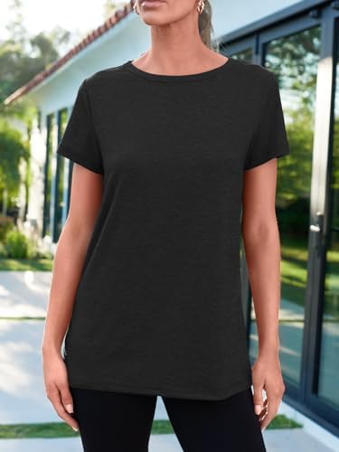 AUTOMET Womens Short Sleeve Round Neck Shirts Summer Fashion Basic Tee