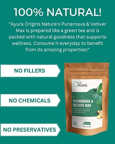 AYURA ORIGINS Nature’s Punarnava and Vetiver Max – Pure Plant Based Kidney Support Herbal Supplement – Rich in Antioxidants, Vegan, Solar Dried, No Preservatives – 3.53 oz – 50 Servings