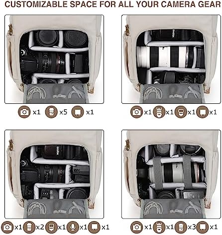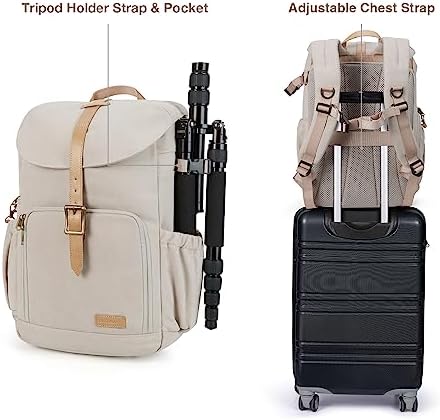 BAGSMART Camera Backpack, DSLR Camera Bag Backpacks for Photographers, Waterproof Anti-Theft Photography Backpack with 15 Inch Laptop Compartment & Tripod Holder, Ivory White
