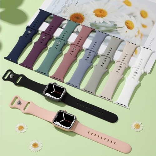 Bandiction 10 Pack Bands Compatible with Apple Watch Band 38mm 40mm 41mm, Soft Waterproof Silicone iWatch Strap Wristband for Apple Watch Ultra Series 9 8 7 SE 6 5 4 3 2 1 Women Men,