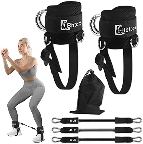 Ankle Resistance Bands–Bbtops Ankle Resistance Band Set includes 3 resistance bands, 50LB, 40LB, 30LB, Ankle straps Use them for kickbacks, lunges, and donkey kicks to strengthen your legs, hips, and core muscles. Improve your muscle strength, stamina, agility and balance.And can be stacked up to a maximum of 120 lbs.