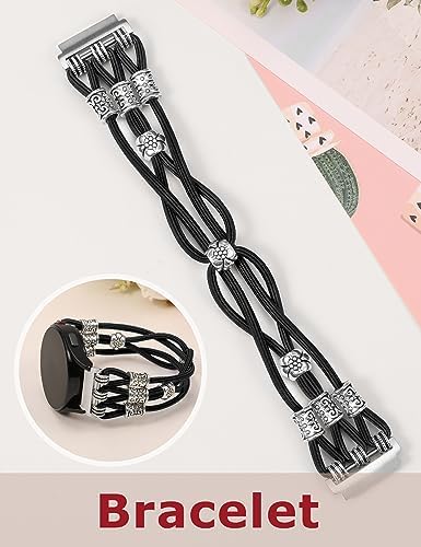 Beaded Bracelet Band Compatible with Samsung Galaxy Watch 6&5&4 40mm 44mm/Watch 6 Classic 43mm 47mm/Watch 5 Pro 45mm/Watch 4 Classic/Active 2/Watch 3 Women, 20mm TOYOUTHS Boho Stretchy Charms Solo Loop Strap