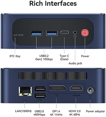 【More Ports Designed】This mini desktop computer has DC Jack*1, USB 3.0*4, RJ 45 1000m*1, HDMI*2, Audio Jack(HP&MIC)*1, Type-C*1. The excellent design of more interfaces supports multitask working, and is more conveniently compatible with various types of data cables.