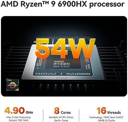 š„ćPOWERFUL PERFORMANCEćBeelink SER6 ryzen mini pc equips with 8-core/16-thread AMD Ryzen 9 6900HX(up to 4.9GHz), The base frequency is 3.3GHz / the dynamic frequency can reach 4.9GHz. Beelink mini pc ryzen is a robust hub for your every work and gaming need. Beelink micro pc excellent in 2 tubes and 1 fan designed makes it excellent in texture, durable and keeps its cool, standby for a day without getting hot.