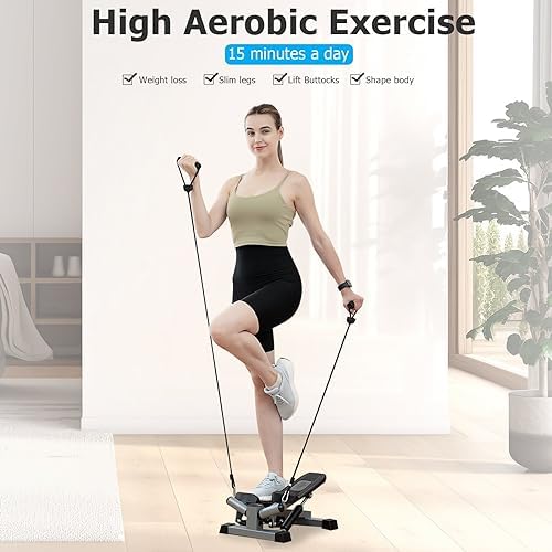 BESVIL Stair Steppers for Exercise, Hydraulic Mini Fitness Stepper with ResistancBands,Home Office Workout Equipment