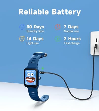 Customizable Watch Face&1.5″ HD Touch Screen:Our kids smartwatch boasts a 1.5″ HD touch screen and offers 50 exquisite cloud dials. Elevate personal style with custom dials using your kids’ own photos and ignite their creativity!