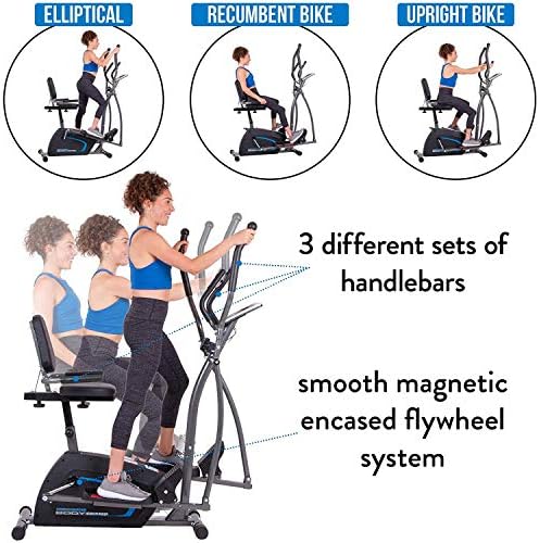 Body Champ 3-in-1 Exercise Machine, Trio Trainer, Elliptical and Upright Recumbent Bike