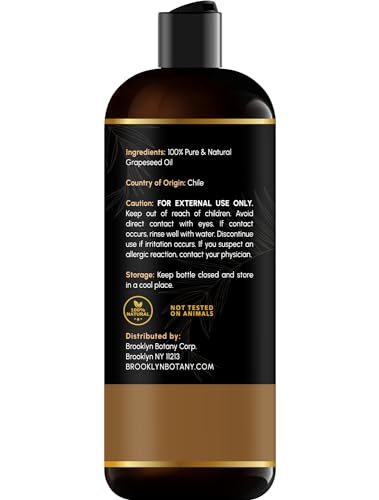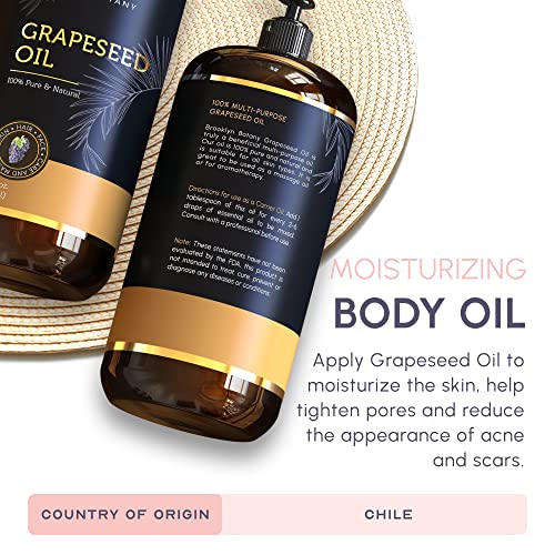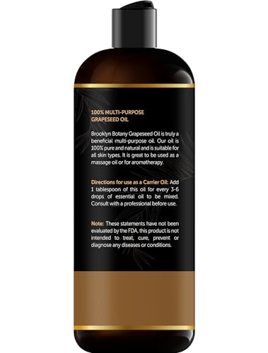 Brooklyn Botany Grapeseed Oil for Skin, Hair and Face – 100% Pure and Natural Body Oil and Hair Oil – Carrier Oil for Essential Oils, Aromatherapy and Massage Oil – 8 fl Oz
