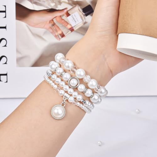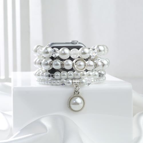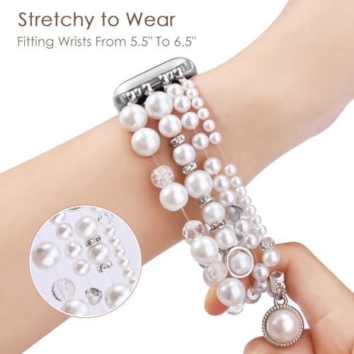 CAGOS Pearl Bracelet Compatible with Apple Wath Bands 38mm 40mm 41mm 42mm 44mm 45mm Women, Natural Pearl Beaded Charms Pretty Straps Dressy Designer Jewelry Stretchy iWatch Bands for Series 9/8/7/6/5/4/3/2/1/SE