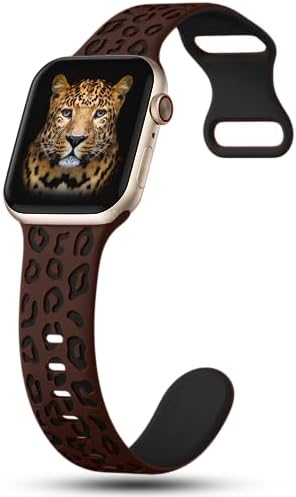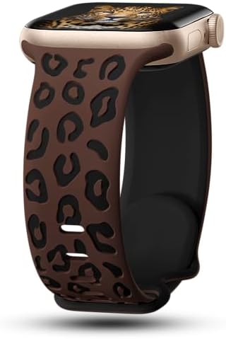 CreateGreat Sport Leopard Engraved Bands Compatible with Apple Watch Band 38mm 40mm 41mm 42mm 44mm 45mm 49mm Women, Silicone Cheetah Designer Sport Strap for iWatch Bands Series SE 9 8 7 6 5 4 3 2 1
