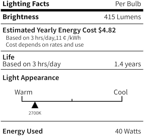 Specification: The specification of this oven light bulb is 40 watts, E26 medium base, A15, 120v, 415 lumens, 2700K, and dimmable. These specifications make the oven light bulb perform well in lighting and also meet your dimming needs.