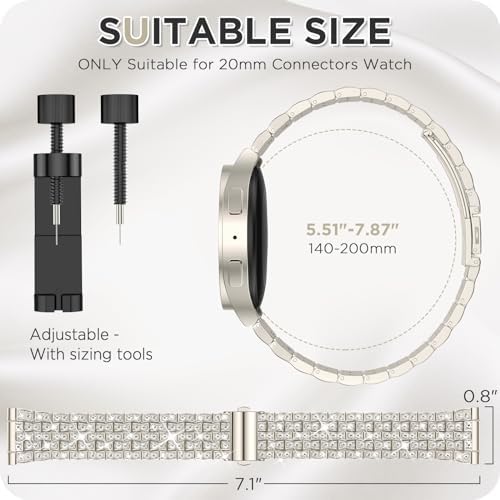 DABAOZA Bling Bands Compatible for Samsung Galaxy Watch 6/5/4/Galaxy Watch 5 Pro/Galaxy Watch 6/4 Classic/Active 2, 20mm Bands Women Diamond Jewelry Rhinestone Sparkle Stainless Metal Clasp Strap