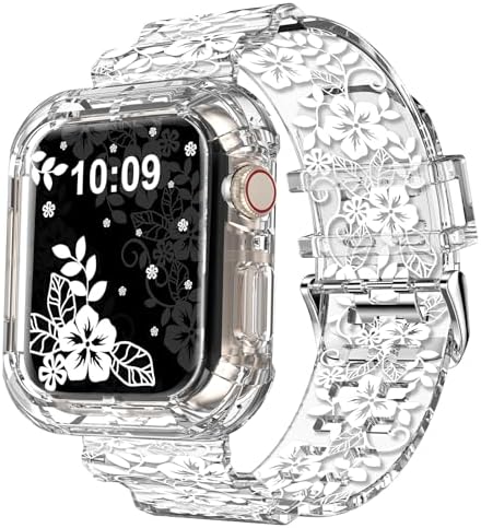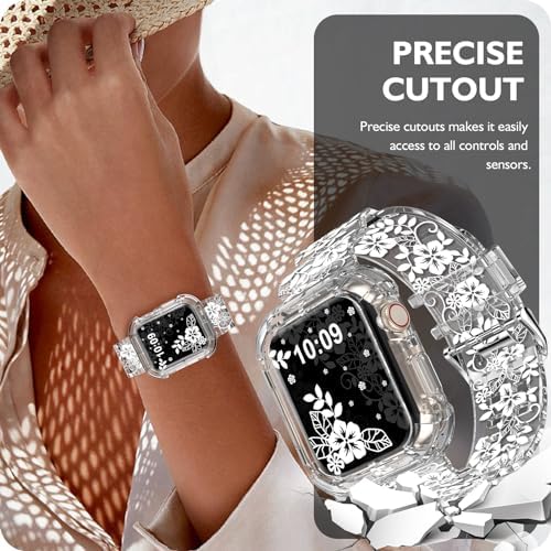 DABAOZA Compatible for Clear Apple Watch Band 38mm 40mm 41mm 42mm 44mm 45mm with Case, Women Girl Glitter Clear Bling Crystal Sport Strap Bumper for iWatch Band Ultra 2/1 SE Series 9/8/7/6/5/4/3/2/1