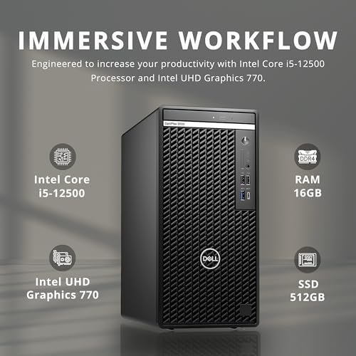 Dell OptiPlex 5000 Business Desktop Computer Tower, Intel Core 12th Gen i5-12500 Processor, 16GB RAM, 512GB PCIe SSD, Intel UHD Graphics 770, DVD Drive, Win 11 Pro, Black