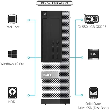 Dell Video Editing CAD OptiPlex 7020 Desktop Computer PC, Intel Core i7-4570 3.2 GHz Processor, 16GB RAM, 480GB SSD (Fast Boot) + 2TB HDD, Graphics RX-550 4GB DDR5, WiFi, Windows 10 Pro (Renewed)