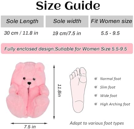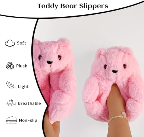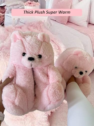 DOVORSY Teddy Bear Slippers for Women,Bear Shoes,Plush Animal Bears Slippers,Winter Warm Fluffy Slides For Girls Christmas Holiday Birthday Gifts