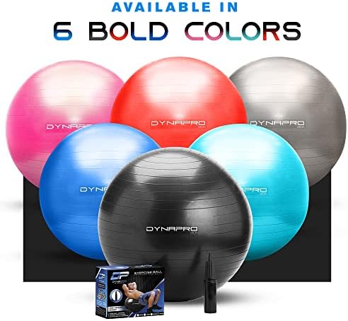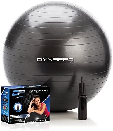 DYNAPRO Exercise Ball – Extra Thick Eco-Friendly & Anti-Burst Material Supports over 2200lbs, Stability Ball for Home, Yoga, Gym Ball, Birthing Ball, Physio Ball, Swiss Ball, Physical Therapy or Pregnancy