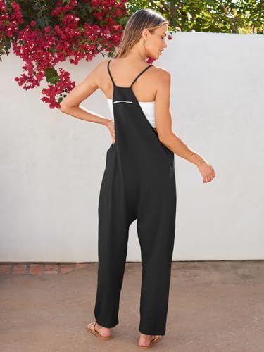 Loose fit overalls for women, long baggy pants,loose style, v-neck design, spaghetti strap jumpsuits,sleeveless rompers ,casual summer outfits, with two sides pockets,solid color,standard size,suit for summer vacation, makes you look very chic.