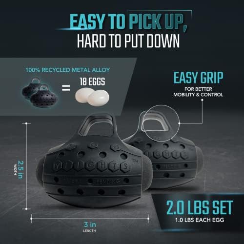 Egg Weights Cardio 2.0 lbs. Set Metal Alloy Hand Weights With Anti-Slip Finger Loop for Yoga, Fitness Training for Men and Women – 2 Eggs, 1.0 lbs each + Free E-Book Workout Guide