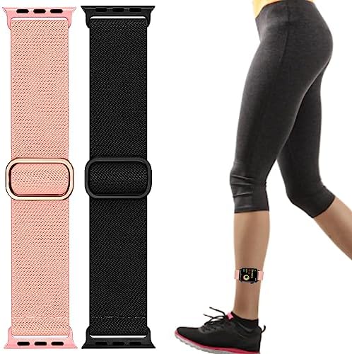 Elastic Ankle/Arm Band Compatible with Apple Watch 49mm 45mm 44mm 42mm 41mm 40mm 38mm, Breathable Nylon Armband for IWatch Ultra SE Series 9 8 7 6 5 4 3 2 1, Sport Loop Ankle Strap for Women Men