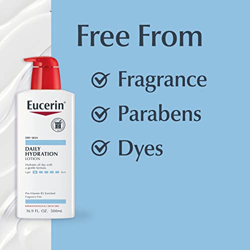 Free Of: Eucerin Daily Hydration is a paraben free body lotion, and is fragrance and dye free, and non-comedogenic