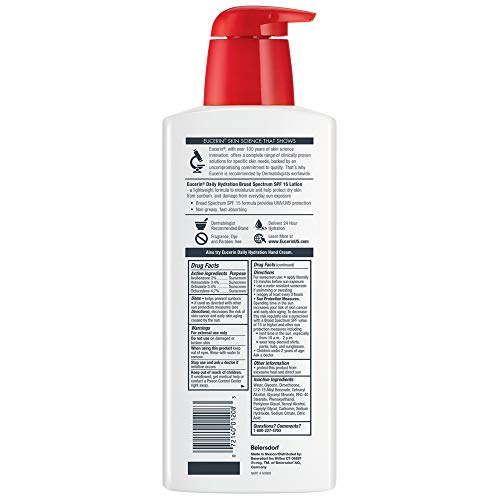 Eucerin Daily Hydration Lotion with SPF 15 – Broad Spectrum Body Lotion for Dry Skin – 16.9 fl. Oz. Pump Bottle (Pack of 3)