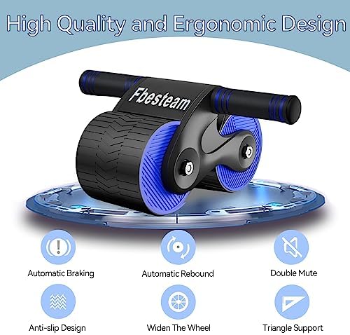 FBesteam Automatic Rebound Abdominal Wheel: Ab Wheel Roller for Core Workout Exercise Equipment Kit with Knee Mat, Abs Fitness Roller for Abs Workout Training Muscle Strength at Home Gym