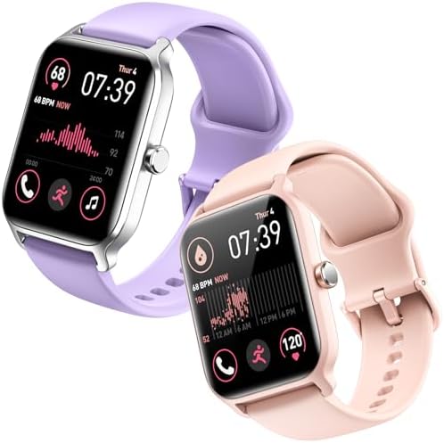 Fitpolo 2 Pack Smart Watches for Men Women, Alexa Built in & Bluetooth Call(Answer/Make), Fitness Tracker with Heart Rate SpO2 Sleep Monitor, IP68 Waterproof, Purple+Pink