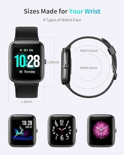 【Practical Watches for Women Men】The smartwatch can be used for fitness monitor, step counter, pedometer, stop watch, timer, women’s health tracking, sedentary alert, meeting reminder, alarm, phone finder, target setting, etc, meeting your daily needs. And it fits for 6.2-9.2 inch wrist(perimeter), light-weight and comfortable wearing on the wrist, suitable for men women and kids.