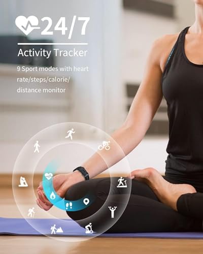 【All-Day Accurate Fitness Tracker】The fitness watch has 9 sports mode (Walking, Running, Bicycle, Hike, Mountaineering, Dynamic cycling, Fitness, Treadmill, Yoga.) for different workout. Accurately record all-day activities, keep track of your daily steps, calories burned, distance walked, active minutes, etc.