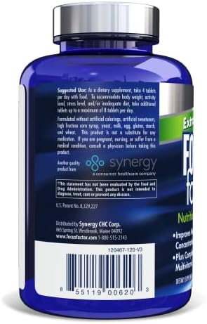 QUALITY FORMULA: Focus Factor Extra Strength takes the original Focus Factor formula and increases the levels of key selected neuro-nutrients. Our brain focus formula contains no artificial colorings or sweeteners