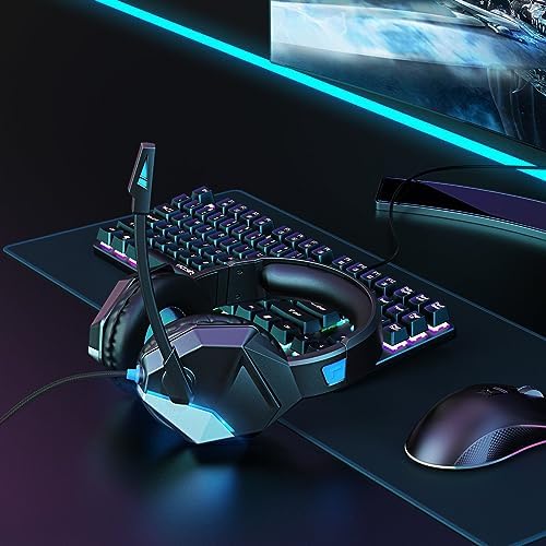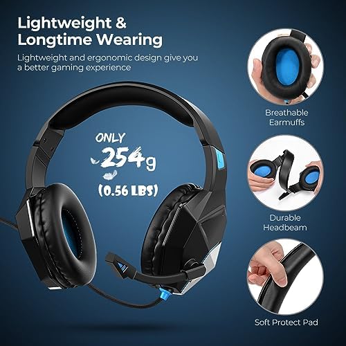 Gaming Headset, Bass Stereo Surround Gaming Headphones with Noise Cancelling Mic, LED Lights, Soft Memory Foam Earmuffs, Wired Headset for PS5/PS4/Laptop/PC/Mac/NES Games