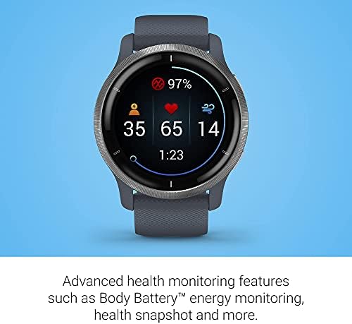 Garmin Venu 2, GPS Smartwatch with Advanced Health Monitoring and Fitness Features, Silver Bezel with GraniteBlue Case and Silicone Band (Renewed)