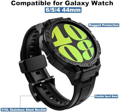 GELISHI Compatible with Galaxy Watch 6 Band 44mm 40mm Case Rugged Men Sport Band Protective Bumper Case for Galaxy Watch 6/5/4 40mm 44mm