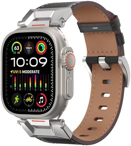 Genuine Leather Band Compatible with Apple Watch Ultra 2/Ultra Band 49mm 45mm 44mm 42mm for Men Women, Rugged Leather Strap with Stainless Steel Connectors for iWatch Ultra Series SE 9 8 7 6 5 4 3